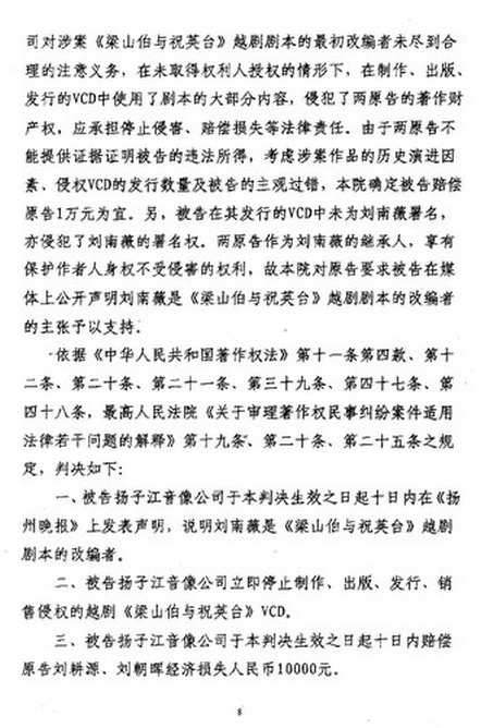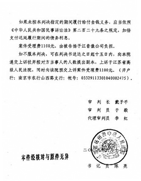 江苏扬州中级人民法院判决书(部分复印件)