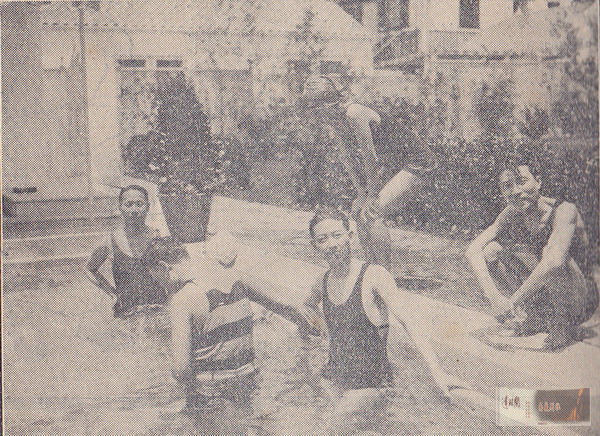 在美国大电影明星范朋克别墅游泳池中(上图)