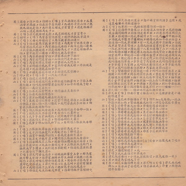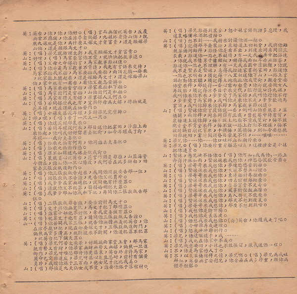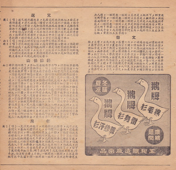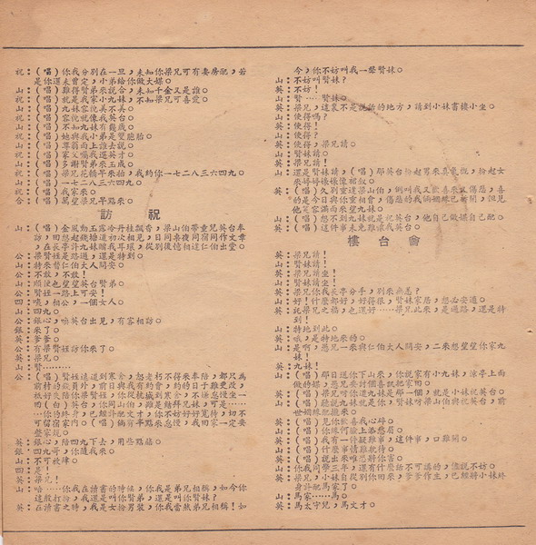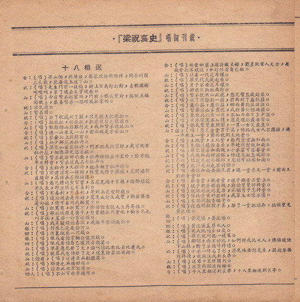 《梁祝哀史》义演“说明书”上刊载唱词(续上)