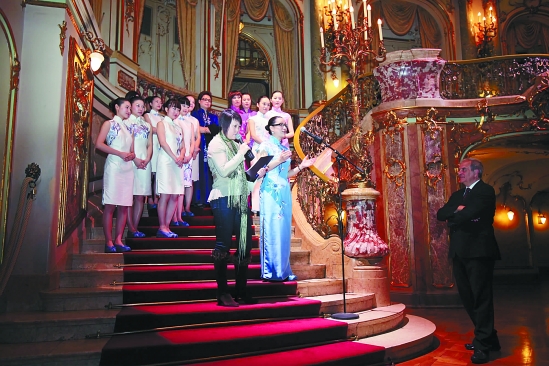 来自江苏镇江的80后留学生戴研,居然是茅威涛的粉丝,她从《陆游与唐琬》之后就一直追看“小百花”的戏。在威市旁边城市美因茨读研的戴研,听说“小百花”要来,早早订好新《梁祝》的票,昨天中午就出发了,坐了一个小时的车赶到威市,下午就溜进剧院看彩排。晚上演出,她的位子在二楼,被柱子挡着看不真切,她一直站着看完全场。结束后她舍不得离开,随记者来到酒会现场后,兴奋得两眼放光,自告奋勇当起了翻译。
